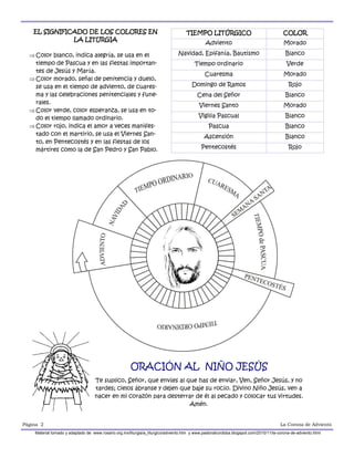 La Corona de Adviento es una tradición alemana adoptada por los cristianos para representar la espera del nacimiento de Jesús durante los cuatro domingos previos a Navidad. Consiste en un círculo de follaje con cuatro velas que se encienden semanalmente, simbolizando la esperanza en la llegada del Mesías y la luz que trajo al mundo. Las familias se reúnen a orar alrededor de la corona, encendiendo una vela cada semana para celebrar la inminente venida de Cristo el día de Navidad.
