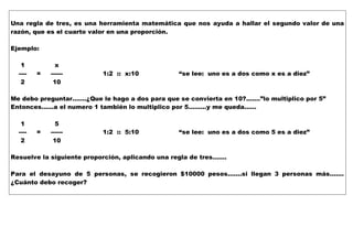 Este documento contiene resúmenes de varias clases de matemáticas de 5o grado. En la primera clase se explica la regla de tres y cómo resolver proporciones. En la segunda clase se cubren temas como potenciación, radicación y logaritmación. La tercera clase trata sobre planos cartesianos, ángulos y triángulos.