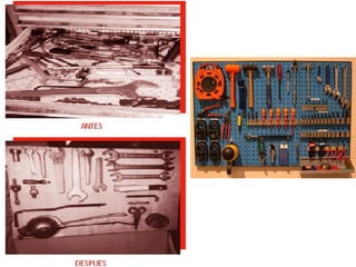 Este documento describe la metodología de las Cinco S Japonesas para lograr orden y limpieza en el lugar de trabajo. Las cinco S son: Seiri (clasificar), Seiton (ordenar), Seiso (limpiar), Seiketsu (control visual), Shitsuke (disciplina y hábito). La aplicación de esta metodología tiene como objetivos mejorar la productividad, calidad, seguridad y satisfacción de los trabajadores al mantener un ambiente de trabajo ordenado y limpio.
