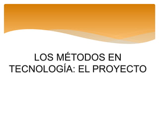 El documento describe las 8 fases del método de proyectos para la asignatura de tecnología, incluyendo 1) identificación del problema, 2) recolección de información, 3) construcción del objetivo, 4) selección de alternativas, 5) planeación, 6) ejecución, 7) evaluación y 8) comunicación. El método enfatiza el aprendizaje basado en proyectos mediante la resolución de problemas técnicos relevantes identificados por los estudiantes.