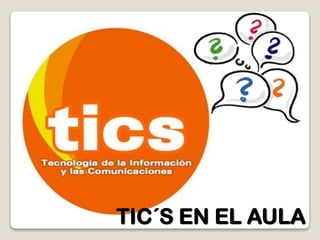 El documento habla sobre las Tecnologías de la Información y la Comunicación (TIC) en el aula. Introduce las TIC como formas de representación, difusión y acceso al conocimiento que incluyen la informática, Internet y las telecomunicaciones. También discute los roles cambiantes de profesores y estudiantes, y las ventajas e inconvenientes de las TIC desde las perspectivas del aprendizaje, los estudiantes, los profesores y los centros educativos.