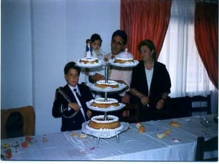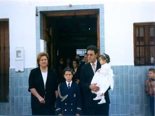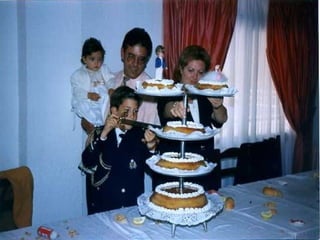 El documento describe los hitos más importantes en la vida de una persona, incluyendo su primera comunión, confirmación, boda, nacimiento de hijos y cumpleaños, así como sus aficiones como el teatro y el canto.