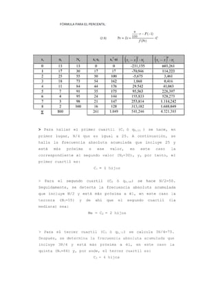 Este documento presenta 20 ejercicios de estadística sobre probabilidad bajo curva normal estándar. Los ejercicios involucran calcular probabilidades utilizando distribuciones normales estándares, donde se proporcionan los valores de la media y la desviación estándar. El documento también presenta ejercicios sobre probabilidad estándar, cuartiles, varianza y desviación estándar, y coeficiente de variación.