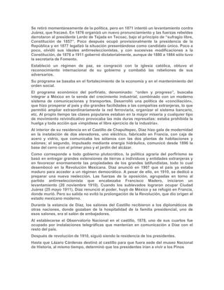 El documento describe la historia del Castillo de Chapultepec en la Ciudad de México. Originalmente fue el hogar de los toltecas y mexicas, luego fue propiedad de Hernán Cortés durante la conquista española. En el siglo XIX, el castillo fue escenario de la heroica batalla contra las fuerzas estadounidenses durante la guerra entre México y EE.UU. Más tarde, sirvió como residencia del dictador Porfirio Díaz y luego de otros presidentes mexicanos hasta que se estableció el Museo Nacional de Historia en el castillo.