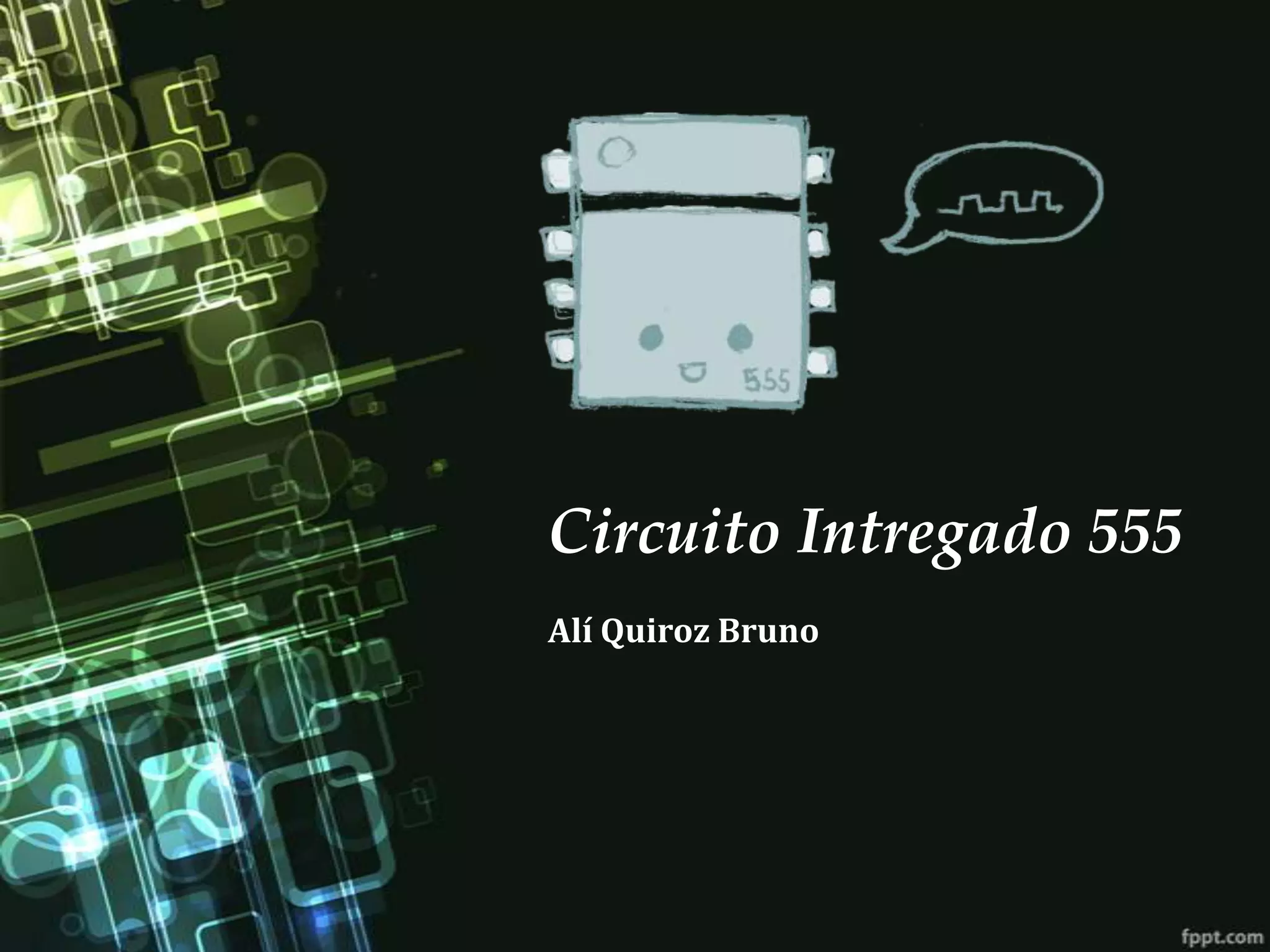 El documento describe el circuito integrado temporizador 555. Fue introducido en 1972 y puede producir demoras de tiempo exactas u oscilaciones controladas por resistencias y condensadores externos. Consiste en 23 transistores, 2 diodos y 16 resistores encapsulados en silicio. Puede funcionar como multivibrador astable u oscilador monoestable generando señales cuadradas.