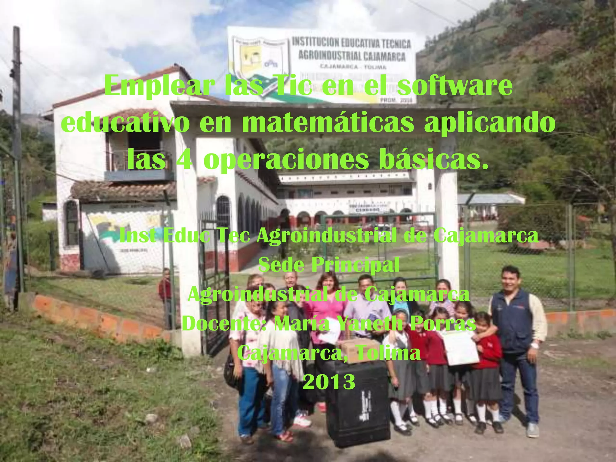 El documento propone la implementación de tecnologías de la información y la comunicación (TIC) a través del software educativo "kitsune 3.0" para ayudar a estudiantes de primaria a reconocer y resolver las 4 operaciones básicas del sistema de numeración decimal. La justificación radica en la necesidad de estimular el aprendizaje y el desarrollo lógico de los alumnos, preparando así una base sólida para la educación secundaria. Se busca cultivar el uso de TIC en diferentes áreas del aprendizaje.