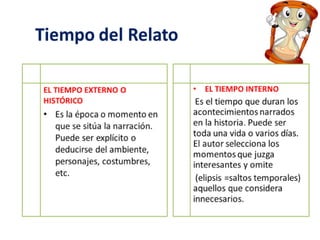 Este documento presenta una introducción al género narrativo, incluyendo sus orígenes, características, estructura y elementos clave. Explica que el género narrativo cuenta historias a través de un narrador y personajes, y que surgió en la antigua Grecia. Además, destaca que las narraciones crean un mundo ficticio con personajes, tiempo y espacio, y que pueden ser escritas u orales.