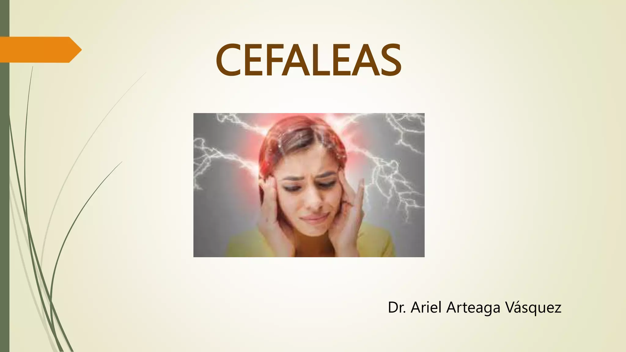 El documento describe diferentes tipos de cefaleas. Resume las cefaleas primarias como migraña, cefalea de tensión y cefalea en cúmulos, que no tienen una alteración cerebral subyacente. También describe las cefaleas secundarias, que sí tienen una alteración cerebral subyacente como causas traumáticas, vasculares o infecciosas. Explica cómo evaluar la gravedad de una cefalea dependiendo de su curso temporal agudo, subagudo o crónico.