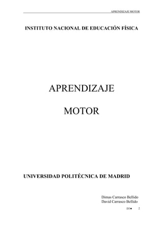 Este documento trata sobre el aprendizaje motor. Explica que inicialmente se tuvo una concepción conductista del aprendizaje motor, pero que luego se incorporaron procesos cognitivos. Describe la evolución de los estudios, desde enfoques conductistas hasta teorías del procesamiento de información. Resalta dos teorías fundamentales actuales: la teoría del procesamiento de información, que analiza la reducción de la incertidumbre a través de la experiencia, y la teoría cibernética.