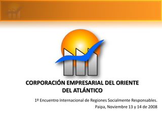 El documento describe los esfuerzos de la Corporación Empresarial del Oriente del Atlántico (CEOA) para promover el desarrollo sostenible en la región a través de la responsabilidad social empresarial. La CEOA es una alianza estratégica entre empresas que busca apoyar la inversión, generar empleo, y mejorar la calidad de vida de las comunidades a través de gestión empresarial, social y ambiental responsable. El objetivo es cerrar la brecha entre el desarrollo empresarial y el bienestar social en la
