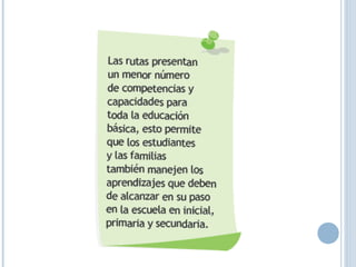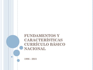 Este documento presenta información sobre el currículo básico nacional del Perú entre 1996 y 2021. Se describe que el Perú es un país diverso con diversidad geográfica, biológica, cultural y lingüística. El enfoque curricular es humanista, cognitivo, afectivo y sociocultural, con un currículo abierto y flexible centrado en competencias, capacidades, valores y actitudes. El currículo es intercultural, inclusivo e integrador, y busca el desarrollo de aprendizajes fundamentales en los estudiantes.