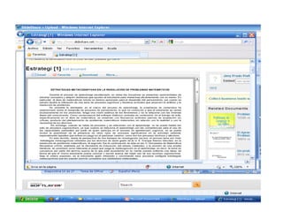 Este documento proporciona instrucciones paso a paso para crear una cuenta en SlideShare, subir un archivo, agregar metadatos y publicarlo. Inicia con registrarse en la plataforma llenando los campos requeridos y activando la cuenta. Luego se explica cómo navegar para seleccionar un archivo, agregar un título, palabra clave y descripción antes de publicarlo. Finalmente, se indica cómo cerrar sesión.