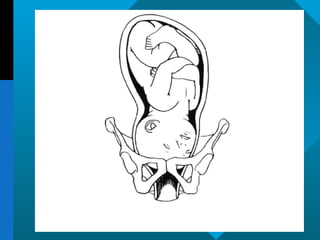 El documento describe las distintas anomalías que pueden presentarse durante el trabajo de parto y sus causas. Incluye una descripción detallada del mecanismo del parto en la presentación pelviana, así como gráficas y tablas sobre las tasas de incidencia y progresión normal del trabajo de parto.