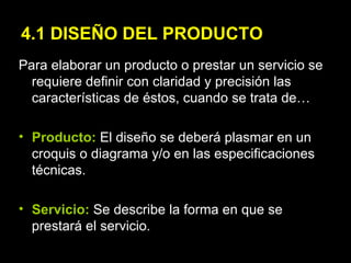 Este documento describe los elementos necesarios para definir la producción de una empresa. Incluye el diseño del producto o servicio, el proceso productivo, la distribución del espacio de trabajo, los cálculos de materiales requeridos y la determinación de herramientas, máquinas y equipos.