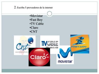 Para conectarse a Internet se necesita una línea telefónica, ADSL o cable, y los principales proveedores son Movistar, Fast Boy, TV Cable, Claro y CNT. Las conexiones incluyen servidores web, DNS e IPS y los navegadores más comunes son Internet Explorer, Mozila Firefox, Opera y Chrome.