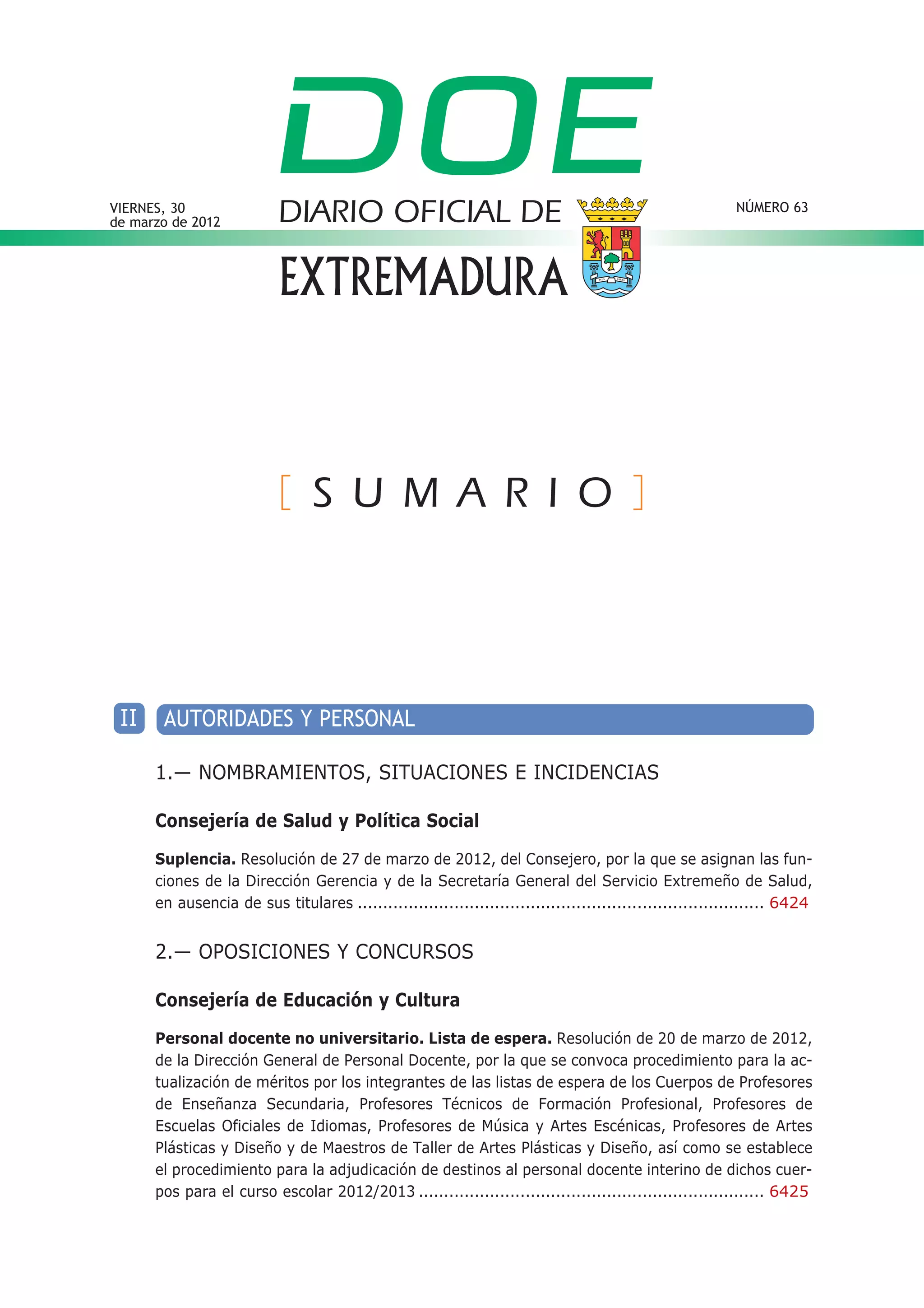 Este documento contiene varias resoluciones de diferentes consejerías del gobierno regional de Extremadura. Incluye nombramientos en el área de salud, una convocatoria de oposiciones docentes, correcciones a convenios colectivos, aprobaciones de modificaciones a normas subsidiarias de planeamiento, adjudicaciones de viviendas protegidas, y anuncios sobre notificaciones de expedientes y resoluciones en materias como medio ambiente, agricultura y vivienda.