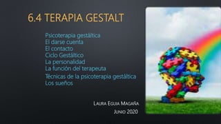 La terapia gestáltica, fundada por Frederick Perls, se centra en la integración del cuerpo y la psique, enfatizando la percepción y la experiencia inmediata. La homeostasis es clave para entender cómo los organismos mantienen equilibrio mediante la satisfacción de necesidades fisiológicas y psicológicas. La terapia gestáltica no busca resolver problemas, sino facilitar la autoexploración y el autoconocimiento, promoviendo el contacto entre el individuo y su entorno.