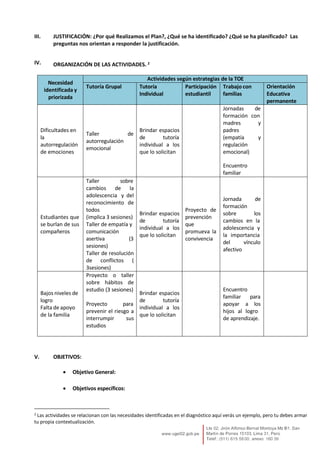 III. JUSTIFICACIÓN: ¿Por qué Realizamos el Plan?, ¿Qué se ha identificado? ¿Qué se ha planificado? Las