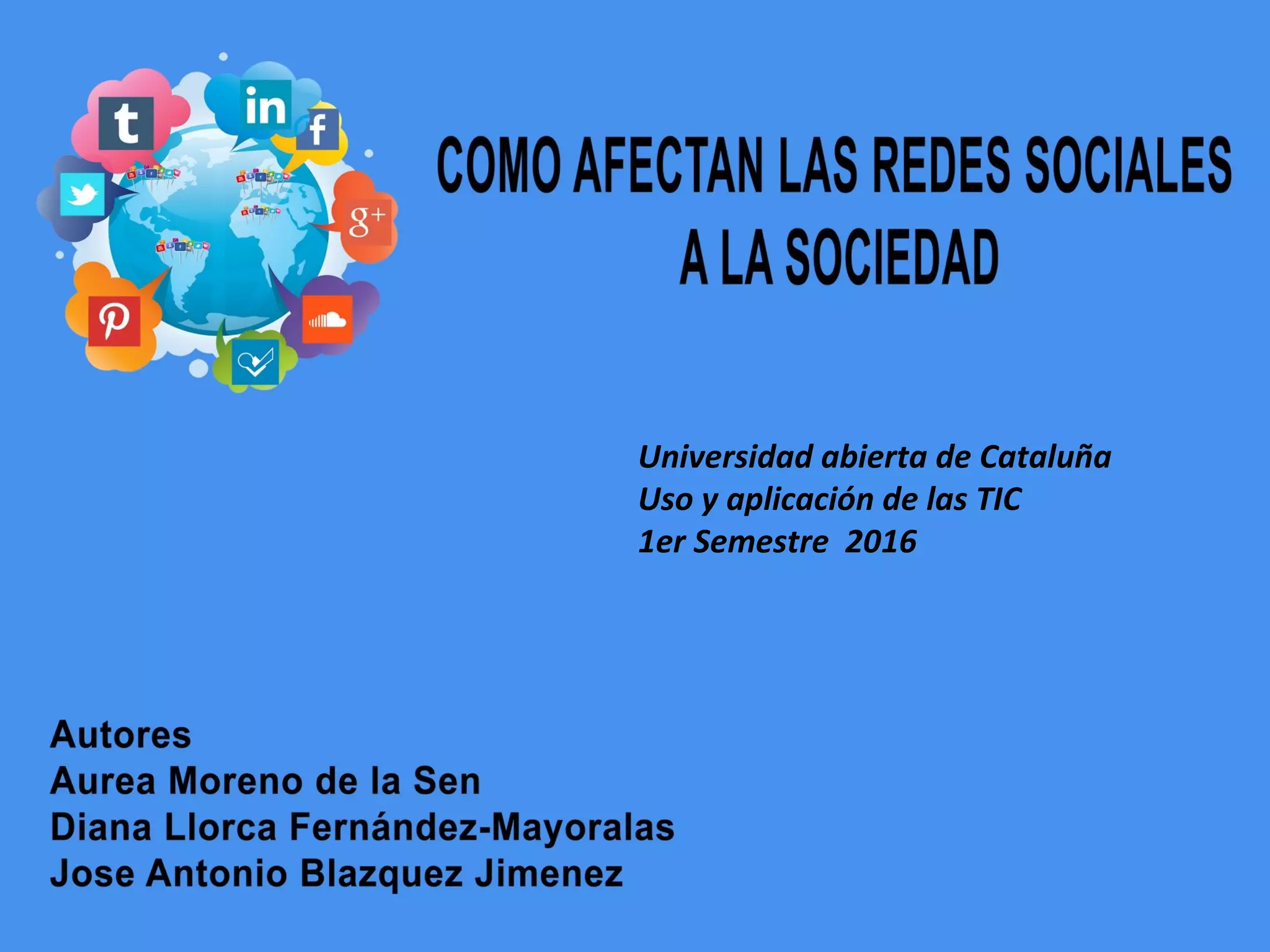 Este documento analiza el uso y aplicación de las tecnologías de la información y la comunicación (TIC) en las redes sociales. Explora seis puntos clave sobre las redes sociales, las normas, su uso entre los jóvenes, en las parejas, los delitos y los pros y contras. También cubre la Ley de Protección de Datos, las obligaciones de los responsables de datos, y seis temas relacionados con las redes sociales.