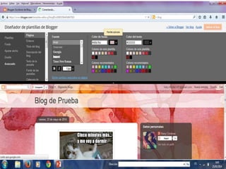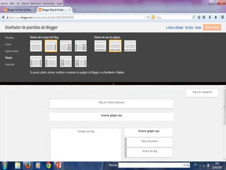 Este documento proporciona 11 pasos para personalizar un blog en Blogger. Estos pasos incluyen acceder a la cuenta de Gmail, seleccionar la opción de Blogger, abrir el blog, seleccionar la opción de diseño, personalizar el blog seleccionando una plantilla y guardando los cambios.