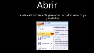 Este documento describe las herramientas básicas de Microsoft Word, incluyendo cómo abrir, guardar, imprimir y previsualizar documentos, revisar ortografía y gramática, cortar, copiar y pegar texto, seleccionar fuentes, deshacer acciones, ajustar el tamaño de fuente, aplicar formato de texto como negrita, cursiva y subrayado, agregar viñetas, justificar el texto y numerar listas.