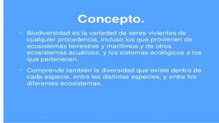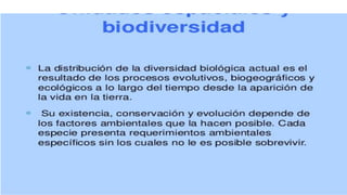 Este documento describe el ciclo del agua en la Tierra, la distribución del agua dulce y salada, y la importancia de la biodiversidad. Explica que el 97% del agua en el planeta es salada, mientras que el 3% restante es agua dulce. De este 3%, el 79% está congelado en los polos y glaciares, el 20% es agua subterránea, y solo el 1% es agua superficial. Además, detalla las etapas del ciclo del agua y los diferentes tipos de bosques y su importancia