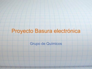 El grupo de químicos "Los Quimiquinos" está investigando la basura electrónica y las pilas y baterías descartadas. Sus preguntas se centran en los componentes químicos peligrosos y los problemas ambientales y de salud que causan. La incineración de electrónicos descartados libera gases tóxicos, y los componentes químicos de pilas y baterías contaminan el suelo, agua y aire cuando son desechados o queman en vertederos.