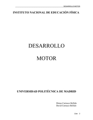 Este documento trata sobre el desarrollo motor humano. Explica que el desarrollo motor es un subsistema del desarrollo humano general y se refiere a los cambios en la conducta motriz a lo largo del tiempo. También discute factores como la maduración, el crecimiento y el ambiente que influyen en el desarrollo motor, y revisa teorías generales como las de Piaget sobre el papel de la motricidad en el desarrollo cognitivo. Además, analiza diferentes metodologías para estudiar el desarrol