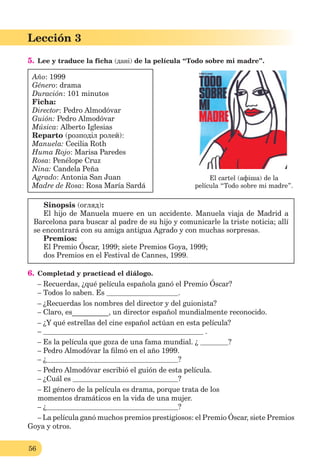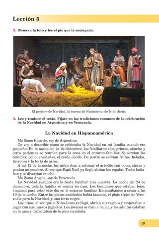 El documento presenta cuatro relatos sobre las vacaciones de verano de diferentes familias. Olga y su familia disfrutaron del turismo rural en Ucrania y les gustó especialmente el mercado artesanal. Marta y su familia visitaron España y les impresionó el Parque Nacional de los Picos de Europa por sus bonitos paisajes. La familia de Artem celebró el 50 aniversario de bodas de oro de sus abuelos con una fiesta familiar. Iván y sus padres viajaron a Perú y les encantó especialmente Machu Picchu y las fi