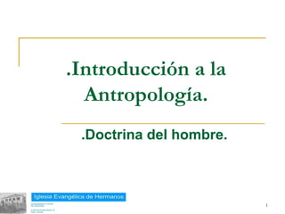 El documento presenta una visión bíblica sobre la antropología. Según la Biblia, Dios creó al hombre y la mujer a su imagen y semejanza, pero cayeron en el pecado al desobedecer a Dios. Como resultado, la humanidad entera nació en pecado y muerte espiritual, separada de Dios, hasta que Él ofreció redención a través de Jesucristo.