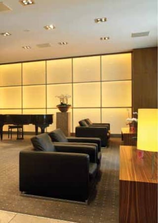 El documento describe diferentes tipos de luminarias Philips para iluminación interior, incluyendo proyectores, sistemas modulares y embutidos orientables. Explica que la línea UnicOne permite incorporar luminarias a la arquitectura de manera elegante. También describe sistemas de iluminación para hoteles, entretenimiento y hospitales que permiten crear diferentes ambientes y experiencias a través de la iluminación.