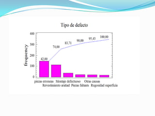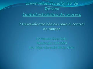 El documento describe 7 herramientas para el control de calidad. Explica que estas herramientas ayudan a resolver problemas de variación en los procesos productivos mediante un enfoque basado en hechos. Las 7 herramientas son: hoja de control, histograma, diagrama de Pareto, diagrama de causa-efecto, estratificación, diagrama de dispersión y gráfico de control. Estas herramientas ayudan a identificar, categorizar y priorizar causas de problemas para mejorar la calidad.