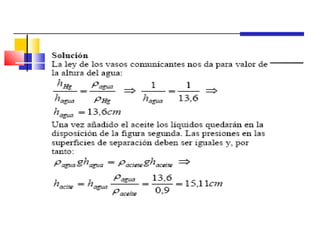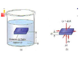 Este documento presenta los conceptos fundamentales de hidrostática e hidrodinámica. Introduce fluidos, densidad, presión hidrostática, ley de Pascal, principio de Arquímedes y tensión superficial. Explica que la hidrostática estudia fluidos en reposo mientras que la hidrodinámica se enfoca en fluidos en movimiento. Presenta ecuaciones como la de continuidad y Bernoulli para describir el flujo de fluidos.