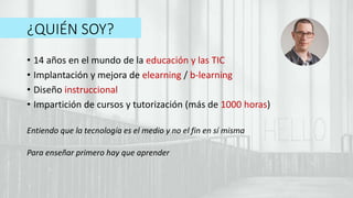 El documento presenta siete estrategias para diseñar cursos de e-learning que fomenten el compromiso de los alumnos, enfatizando la importancia de la tutorización proactiva, el m-learning, el aprendizaje basado en problemas (ABP), la gamificación, el storytelling, la realidad virtual/aumentada y el visual thinking. Cada enfoque se acompaña de consideraciones sobre su implementación y beneficios, destacando cómo pueden mejorar la experiencia de aprendizaje y motivación. Se subraya que la tecnología debe ser un medio para facilitar el aprendizaje efectivo y significativo.