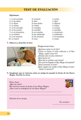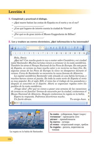 El documento presenta cuatro relatos de estudiantes sobre sus vacaciones del verano. Olga pasó unas vacaciones en un pueblo de los Cárpatos y le gustó especialmente el mercado de artesanías. Marta visitó el norte de España y quedó impresionada por el Parque Nacional de los Picos de Europa. Artem pasó las vacaciones en casa de sus abuelos, donde celebraron el 50 aniversario de bodas y se divirtió con muchos parientes. Iván viajó a Perú con sus padres, subió a Machu Picchu y asist