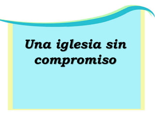 Este documento resume las características de la iglesia de Laodicea mencionada en Apocalipsis. La iglesia se consideraba rica aunque estaba espiritualmente pobre y ciega. Jesús la reprende por su tibieza y le aconseja comprar oro refinado y unción espiritual. A pesar de sus defectos, Jesús sigue llamando a la puerta de la iglesia ofreciendo comunión y victoria sobre el mal.