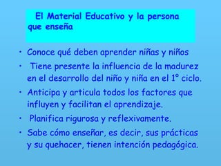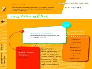 El documento describe un material educativo para niños en los primeros ciclos de educación. Explica que el material se centra en dos núcleos principales: lenguaje verbal y relaciones lógico-matemáticas. Para cada núcleo, identifica aprendizajes esperados y estrategias de mediación según la edad y nivel educativo de los niños. El objetivo es apoyar la planificación pedagógica de manera que los niños puedan desarrollar habilidades específicas a través de actividades apropiadas.