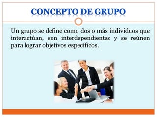 Un grupo sedefine como dos o más individuos que