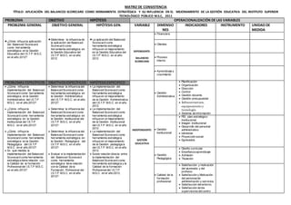 Este documento presenta un estudio sobre la influencia de la aplicación del Balanced Scorecard como herramienta estratégica en la gestión educativa del Instituto Superior Tecnológico Público M.S.C. en 2012. El objetivo general es determinar dicha influencia, y se plantean objetivos específicos relacionados con la gestión administrativa, institucional, pedagógica y la calidad de formación profesional. Se formulan hipótesis sobre cómo el Balanced Scorecard puede mejorar cada una de estas áreas.