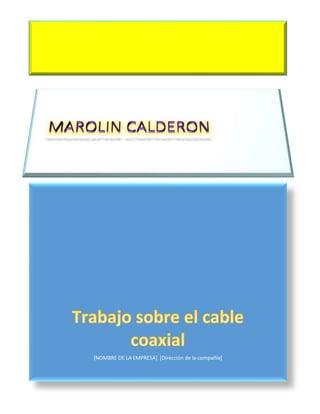 Este documento describe los cables coaxiales, que consisten en dos conductores cilíndricos separados por un aislante. Explica que hay tres tipos principales de cables coaxiales y describe sus usos comunes, como la transmisión de señales de televisión y datos. También detalla diferentes tipos de cables coaxiales como RG-58, RG-8 y RG-11, y explica sus características como grosor, ancho de banda y uso típico.