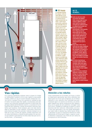 El documento habla sobre técnicas de conducción para motos y scooters. Explica que debido a su bajo peso y tamaño, las motos son más ágiles que otros vehículos y a menudo necesitan adelantarlos. Describe cómo realizar adelantamientos de forma segura dentro y fuera de la ciudad, prestando atención a puntos ciegos y posibles giros. También menciona cómo aprovechar el "rebufo" de otros vehículos para ganar unos km/h extra de velocidad de forma segura al pasarlos.