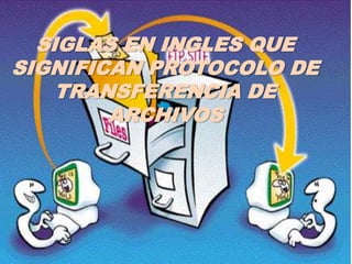 El Protocolo de Transferencia de Archivos (FTP) permite la transferencia de archivos entre sistemas conectados a través de redes TCP/IP, habiendo nacido originalmente en Arpanet en 1968 para compartir archivos entre unos pocos ordenadores. Es un programa servidor que se ejecuta en equipos conectados a Internet y que facilita la transferencia de archivos entre ellos.