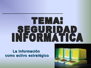 Este documento define los conceptos clave de un sistema informático, incluyendo hardware, software, datos y usuarios. Explica que la seguridad informática se ocupa de diseñar normas y métodos para procesar datos de manera segura y confiable. Se basa en tres principios: confidencialidad, integridad y disponibilidad. También identifica factores de riesgo tecnológicos como virus informáticos, y describe las características y clasificaciones de los virus.
