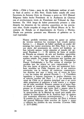 Este documento describe el cambio de estrategia de San Martín para liberar el Perú de 1820 a 1822. Explica que la expedición a Chile fue exitosa porque contó con el apoyo del pueblo chileno, mientras que en el Perú la élite limeña era más conservadora y dudosa de la revolución. También destaca que mientras el ejército realista controlaba firmemente el Alto Perú, la mejor estrategia era liberar primero Chile y luego Lima para luego dirigirse al norte.