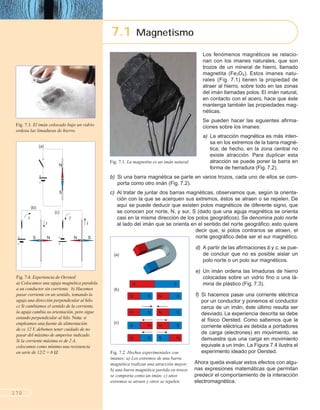 Este documento describe los principios fundamentales del magnetismo y su relación con la electricidad. Explica que el magnetismo puede reproducirse artificialmente debido a su estrecha relación con la electricidad, y que los principios del magnetismo y la electricidad son la base del funcionamiento de los motores eléctricos. A continuación, define los conceptos de imán, polos magnéticos, campo magnético e inducción magnética, y describe experimentos clave como el de Oersted que demostró que una corriente eléctrica genera un campo magnético.