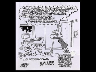 El documento explica que el 8 de marzo se celebra el Día Internacional de la Mujer para conmemorar dos hechos importantes en la lucha por los derechos de las mujeres: las movilizaciones feministas por el derecho al voto desde principios del siglo XX y la muerte de 129 trabajadoras textiles en 1908 que reclamaban mejoras laborales. La ONU declaró el 8 de marzo como el Día Internacional de la Mujer en 1977 para celebrar los logros de las mujeres y seguir avanzando hacia la igualdad.