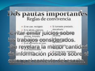 En 1993, se llevaron a cabo una serie de talleres con 10 maestros de una escuela en Massachusetts para examinar trabajos escritos por los estudiantes. El objetivo era investigar el significado y la intención de lo que los niños escribieron para que los maestros pudieran conocer mejor a los estudiantes a través de sus textos. Había tres tipos de preguntas: generales sobre los trabajos, específicas sobre un trabajo en particular y sobre los datos del estudiante.