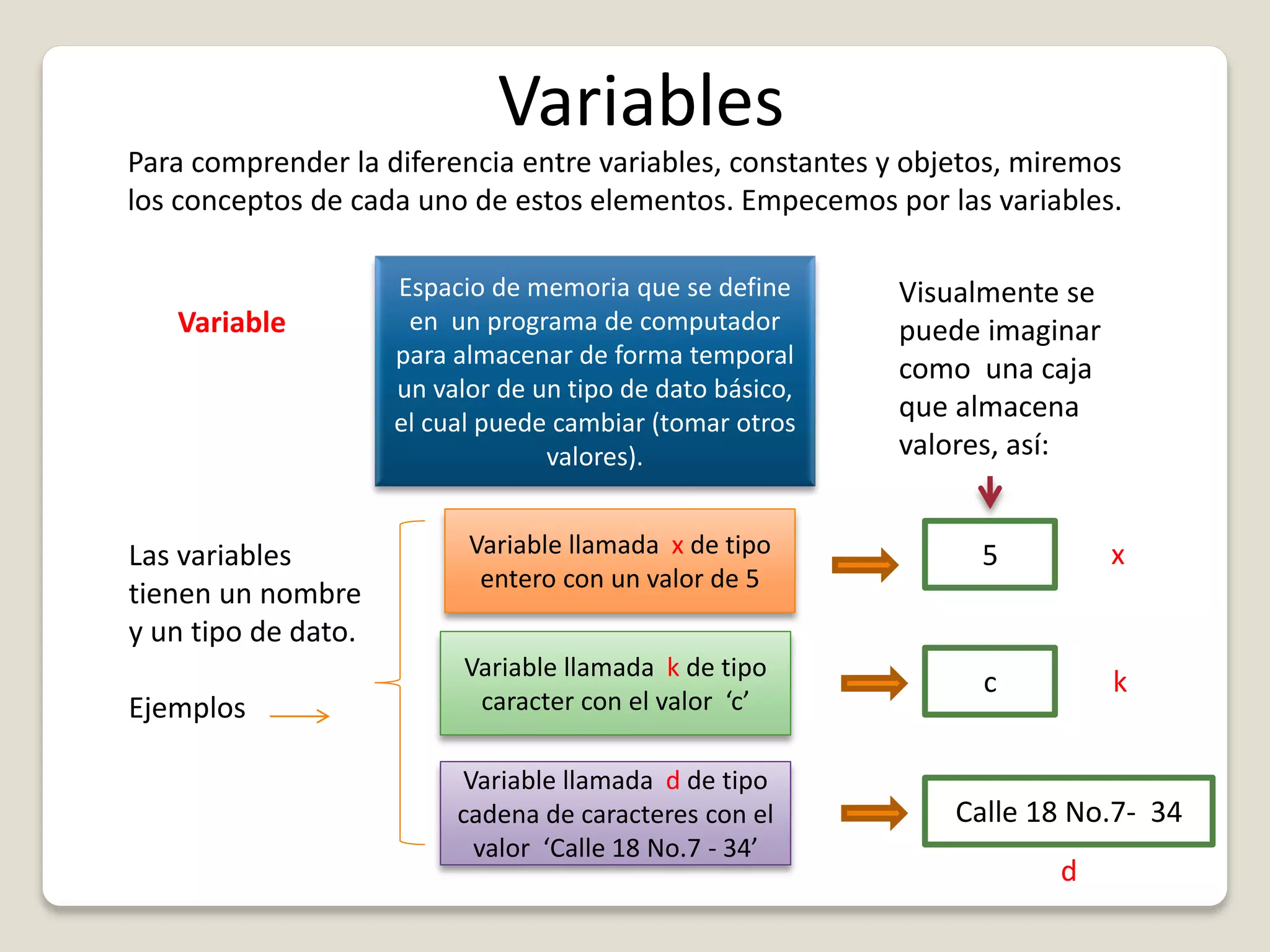 Este documento explica las diferencias entre variables, constantes y objetos en Java. Las variables almacenan valores que pueden cambiar, mientras que las constantes almacenan valores fijos. Los objetos son instancias de clases que contienen atributos y métodos, y se crean usando la palabra clave "new".