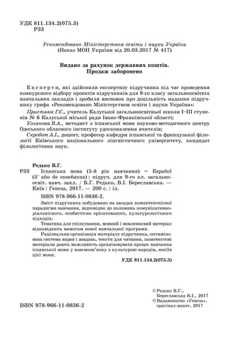 Este documento presenta la ficha de expertos que evaluaron un libro de texto de español para el 9o grado según el concurso de selección de libros de texto del Ministerio de Educación de Ucrania. Los expertos son: 1) Un profesor de una escuela secundaria en Kalus, 2) Una metodóloga de español de un centro de investigación y método en Odesa, 3) Un profesor asociado y doctor de la cátedra de filología española y francesa de la Universidad Lingüística