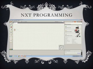 Este documento proporciona instrucciones para reproducir sonidos, utilizar la pantalla y hacer que un robot avance usando el software de programación NXT. Explica cómo configurar y ejecutar patrones de sonido, visualización y movimiento para controlar las acciones de un robot programable.